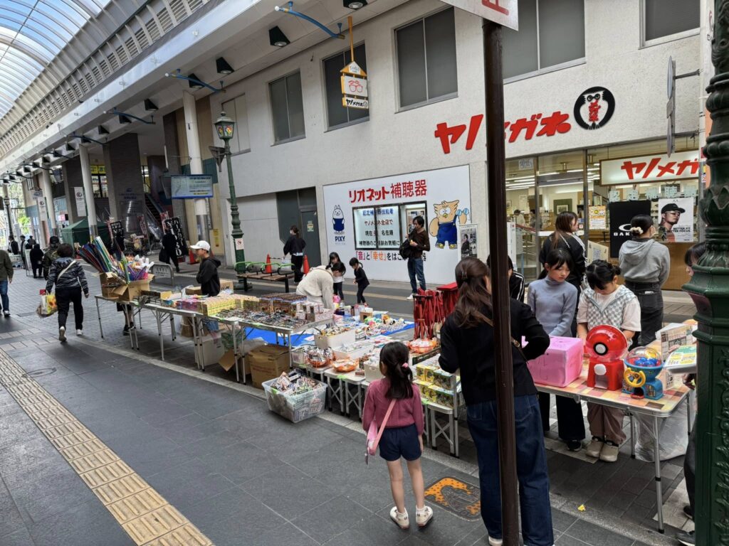 こども店長さんたちがお菓子すくい、くじ引き、ガチャくじなどのわくわく縁日とフリマをしました。