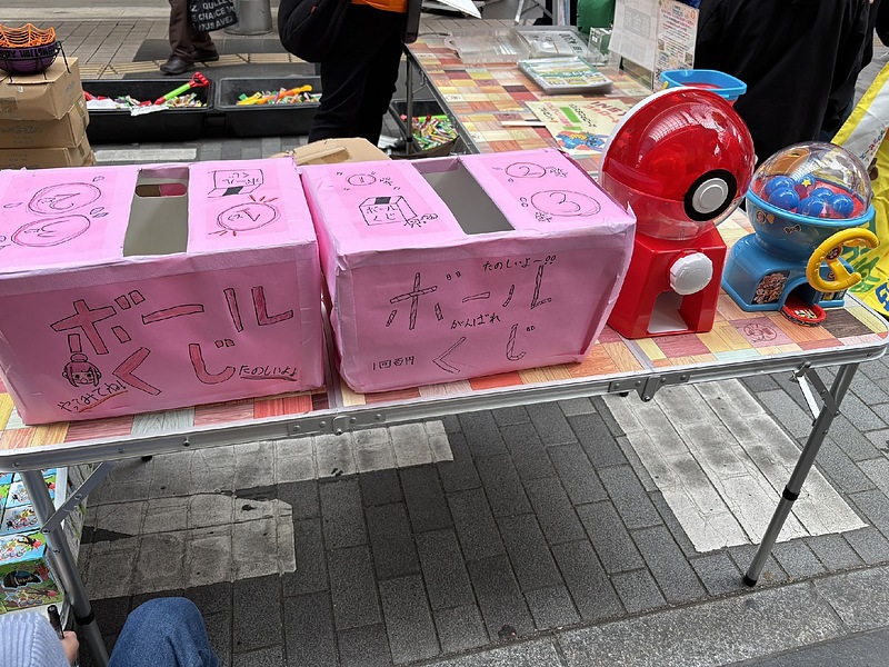 ガチャくじやボールくじ、お菓子すくいなどの準備をしたり、たくさんの景品の準備をして、みんなでお客様を呼び込むための声を出すのも頑張りました☺